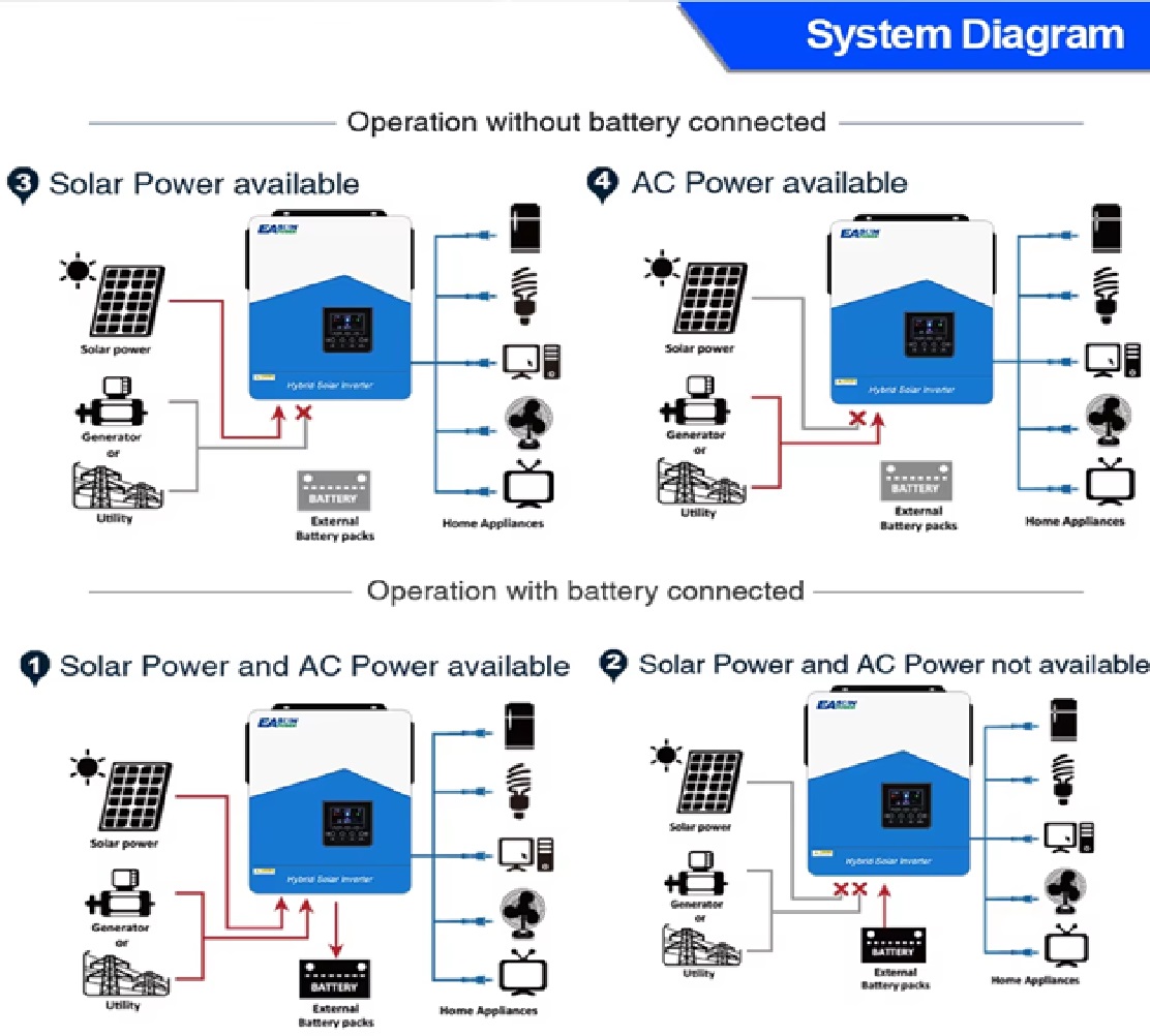 4) Προτεραιότητα AC/Solar Charger με δυνατότητα ρύθμισης μέσω της ρύθμισης LCD