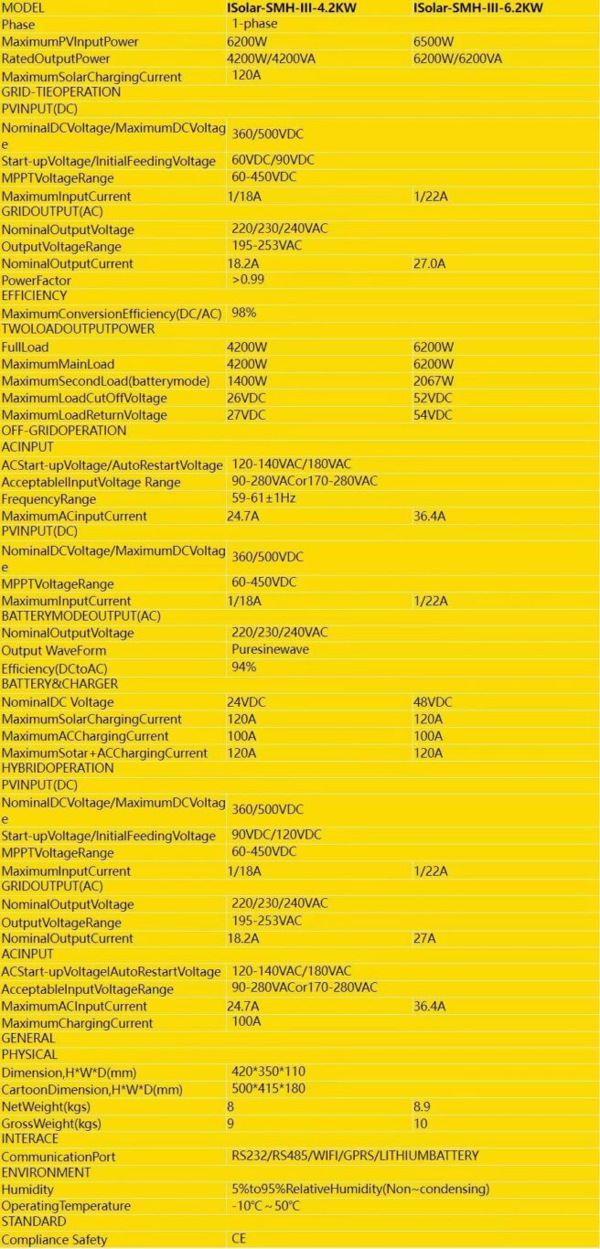 Για το μοντέλο SMH II 7KW και το SMH II 4.2KW έχει ενημερωθεί σε SMH III 6.2KW και SMH III 4.2KW, με Διπλή Έξοδο που μπορεί να λειτουργήσει χωρίς μπαταρία.